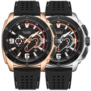 Crisp, bold styling, and meticulously engineered gold-plated stainless steel case give the Redbridge watch its contemporary air. Fitted with a premium flexible and durable silicone strap and with water resistance up to 3ATM, this timepiece is designed to withstand wherever life's adventures take you.